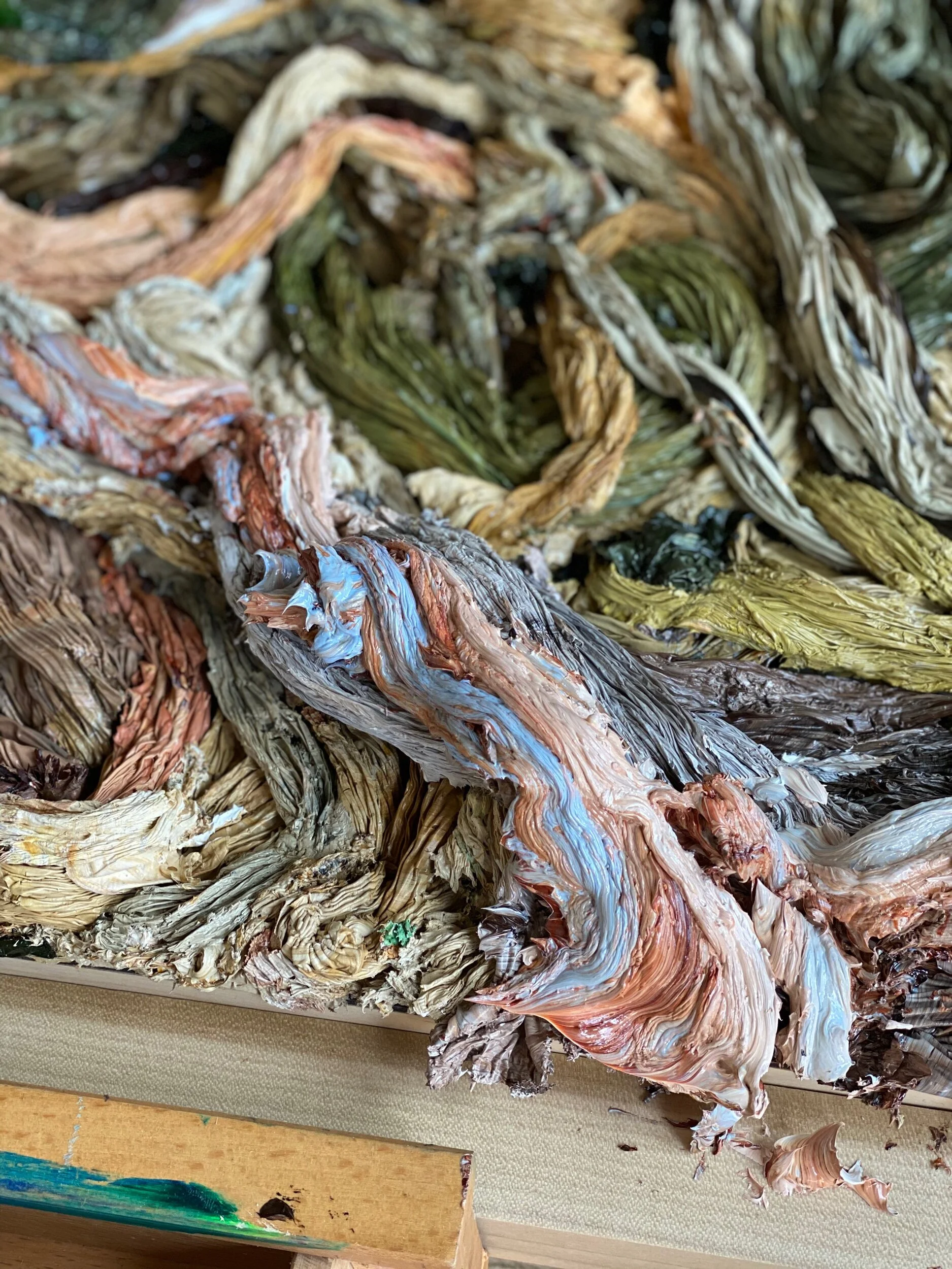 Ed Majkowski is an artist who uses oil paint in an unconventional way to explore how resilient people become a source of strength for others. Taking inspiration from the rugged New England landscape, he presents a reality that juxtaposes what should be the soothing effect of nature with its unequivocal brutality. While equating this to the strain of a quickly changing social outlook in which we are too overwhelmed to be present, Ed’s paintings are a catalyst for those who have worked through the noise and achieved focus in their lives to help others do the same.