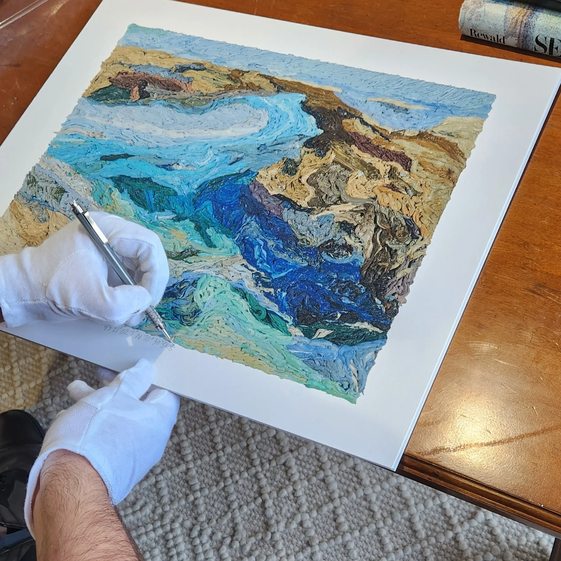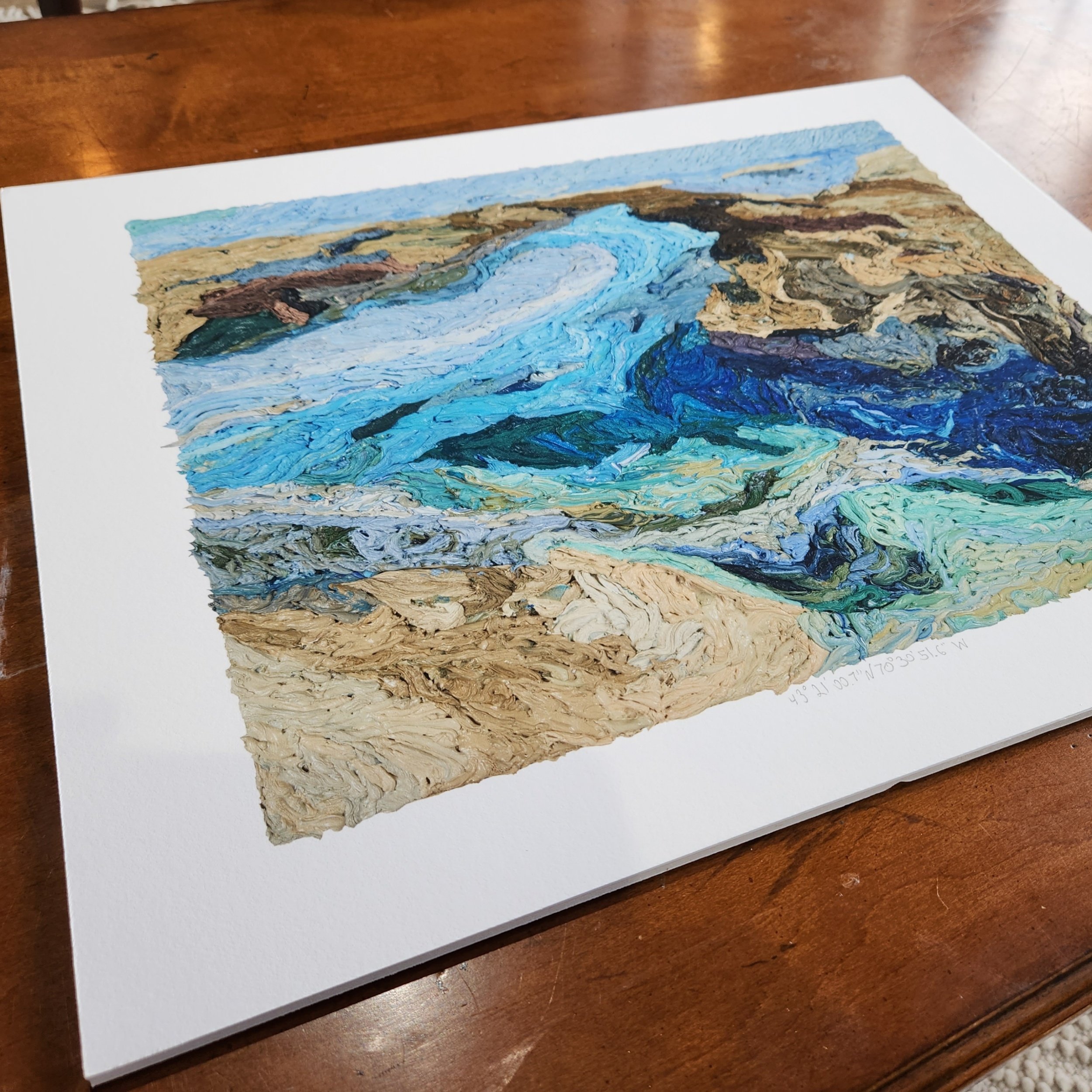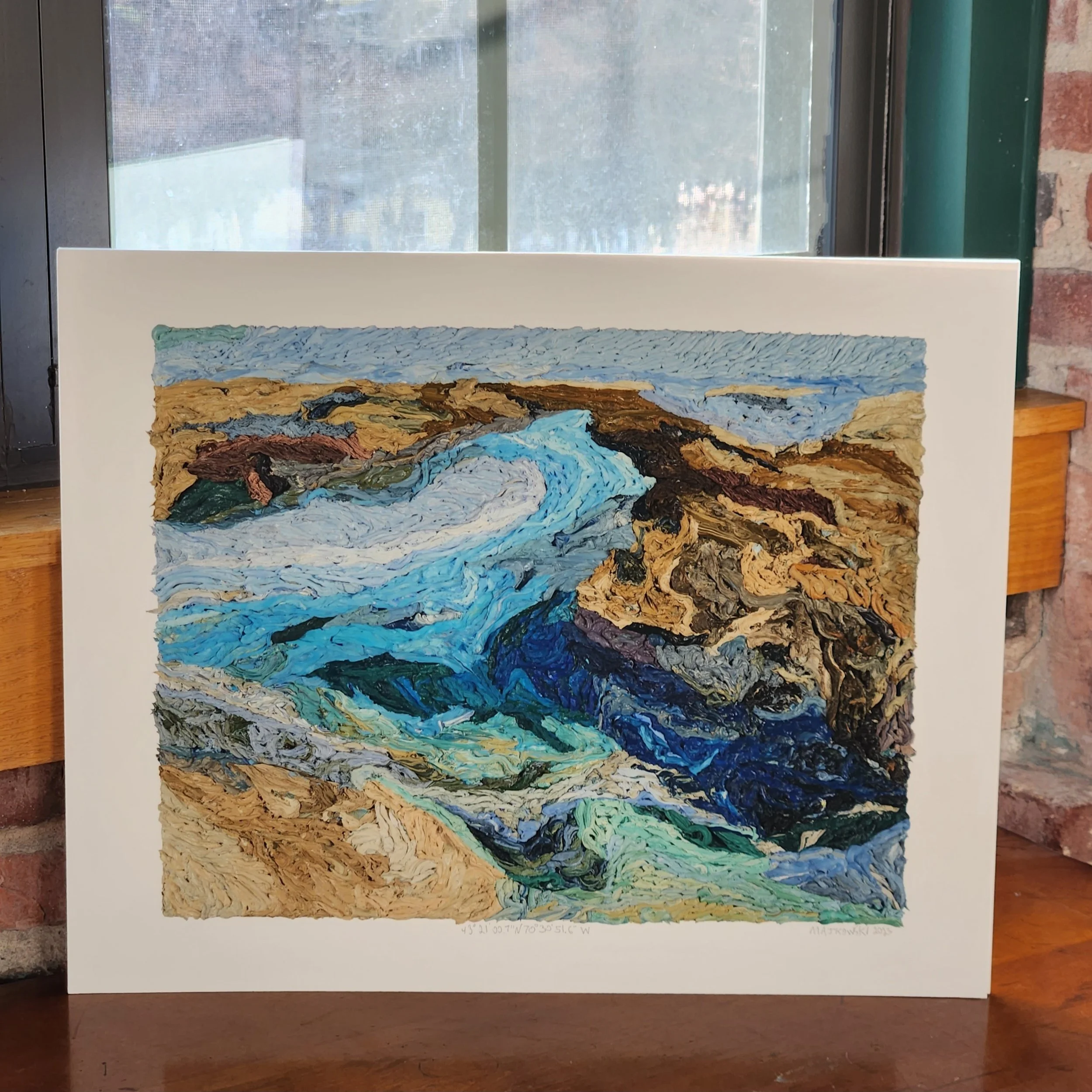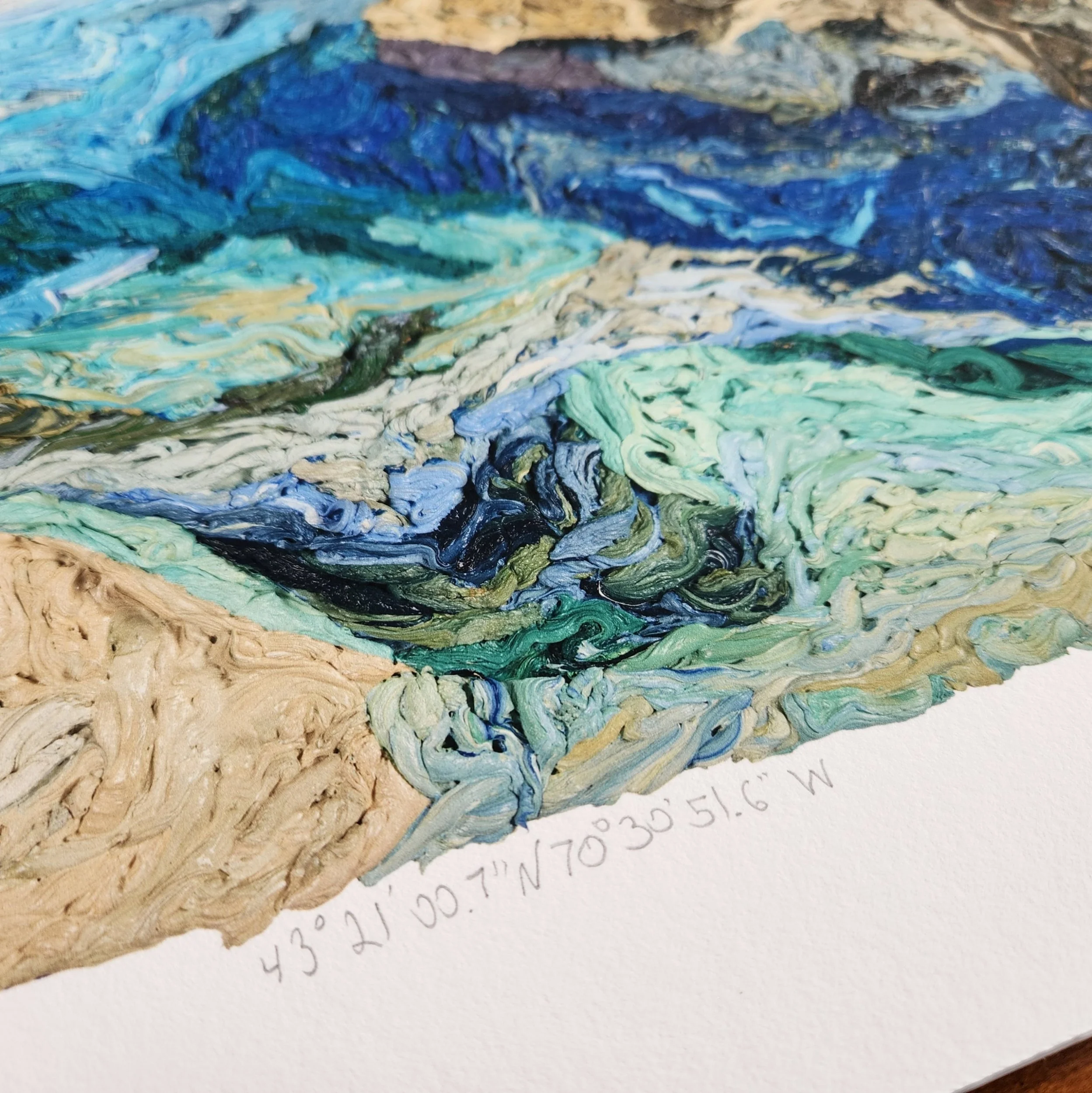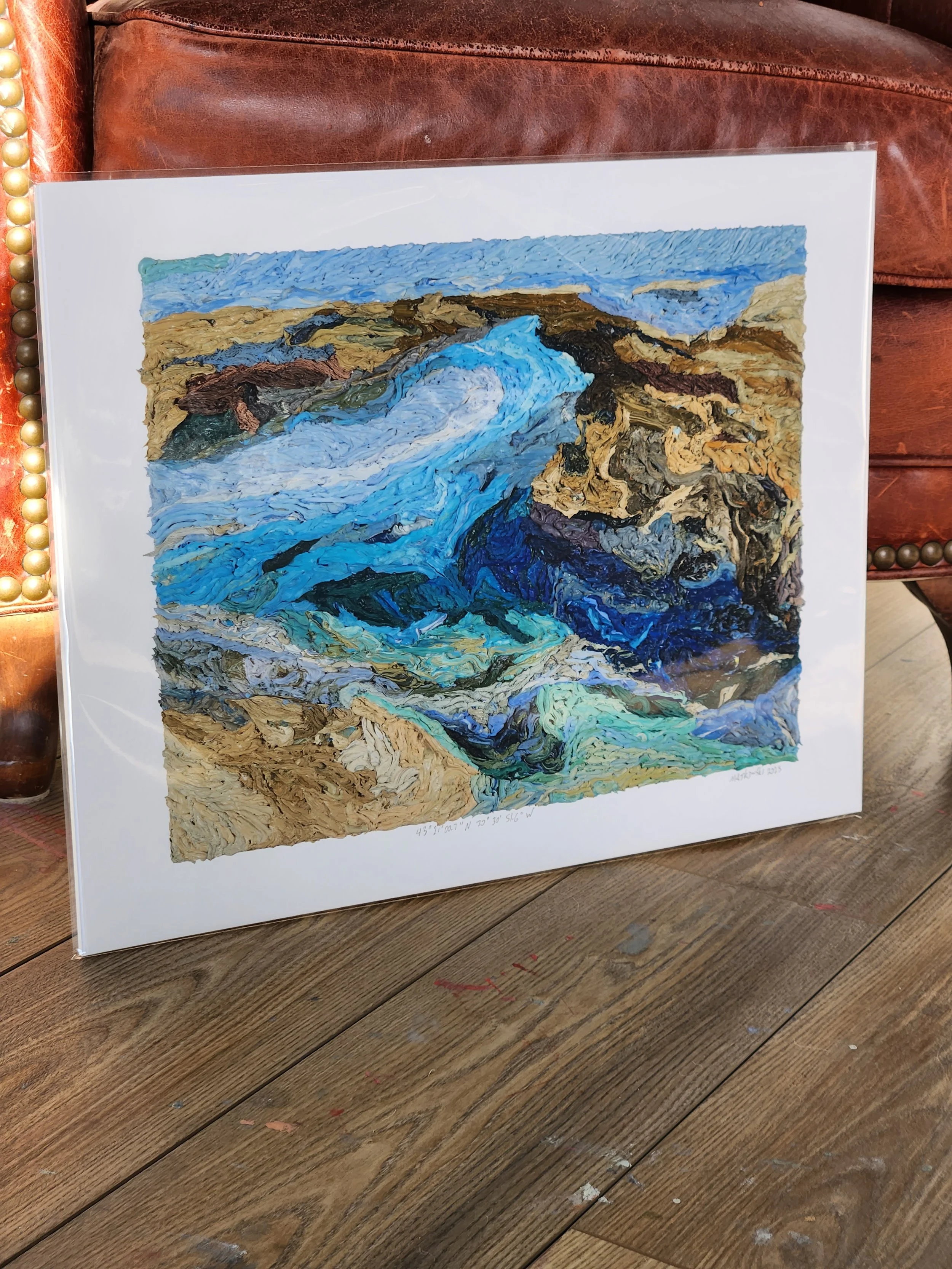 43°21'00.7"N 70°30'51.6"W is a hand-signed signed giclée print.